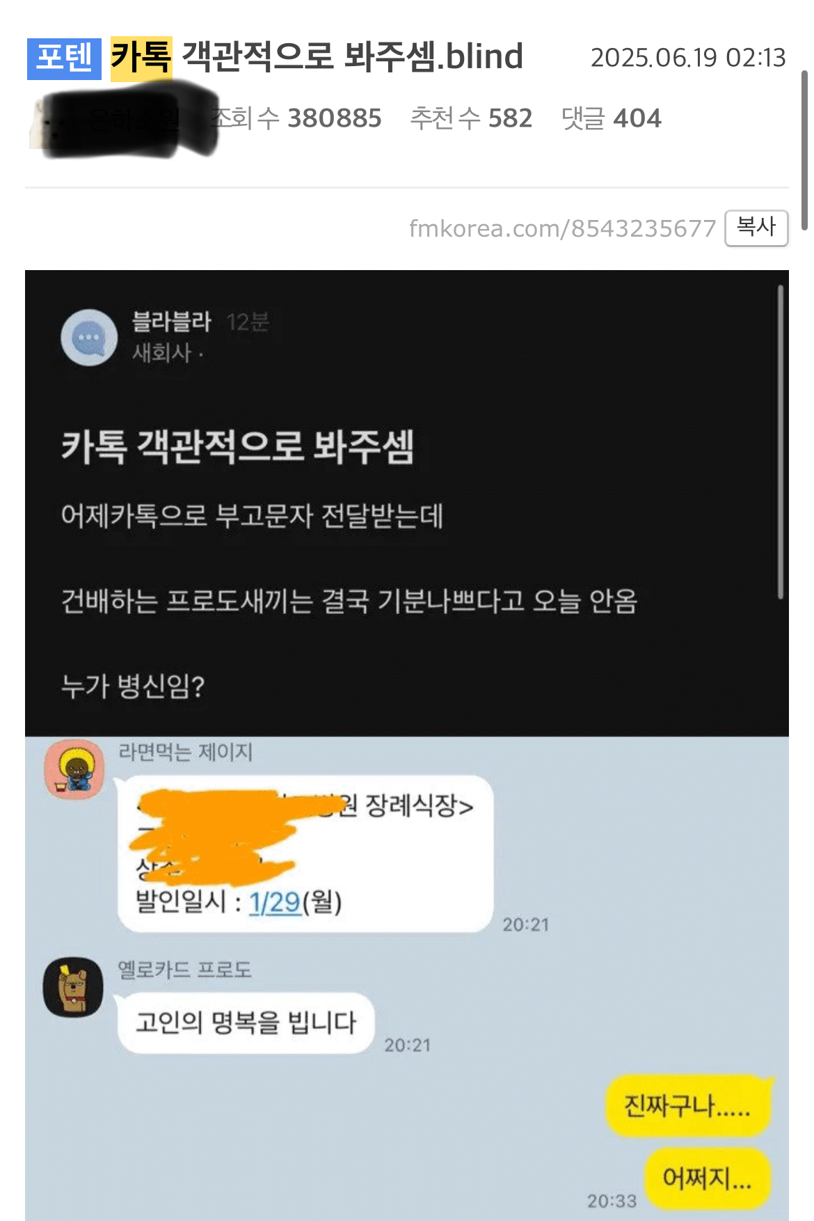 빡침주의) 부고문자 보냈는데 이렇게 옴.