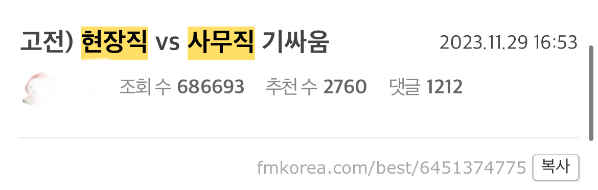 현장직 VS 사무직 역대급 싸움 PTSD 오네 하…