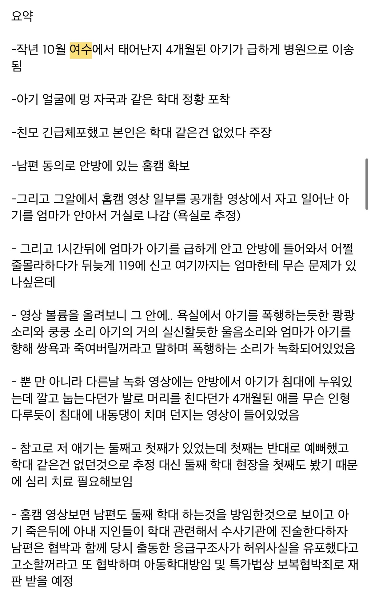 어제자 그것이 알고싶다 요약.. 여수 영아 살해사건….